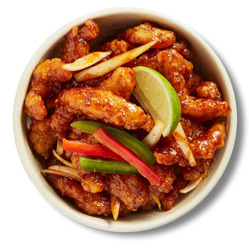 Vår mest populära wokrätt! Krispig kyckling i en frisk apelsinsås – en perfekt balans mellan sött och syrligt som alltid går hem.
