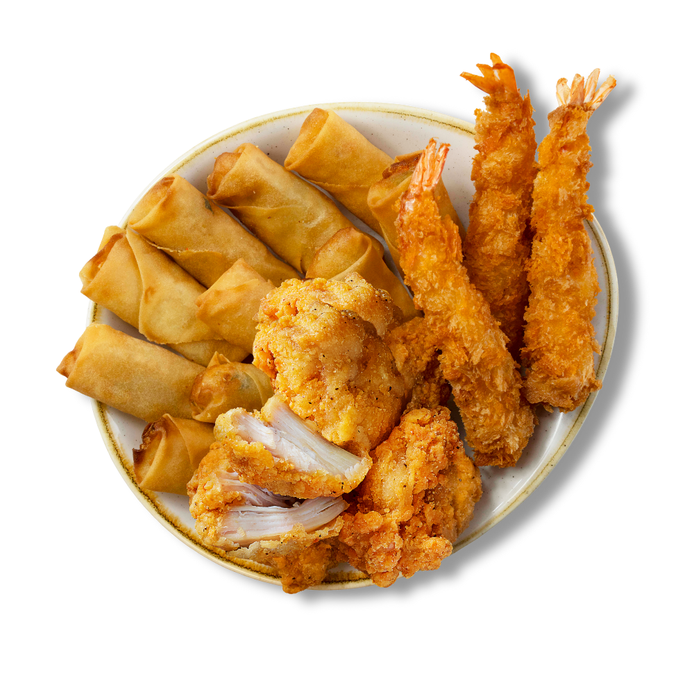 En krispig trio med våra favorittillbehör. Innehåller 10 Spring Rolls, 3 Crispy Shrimp och 3 Chicken Karaage. Serveras med dippsåserna Sweet Chili och Sriracha Mayo. Perfekt att dela med vännerna!