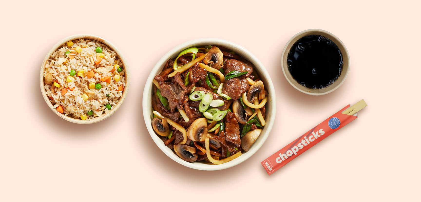 Mild men ändå smakrik rätt där mör biff kombineras med krispiga bambuskott, champinjoner och purjolök och wokas i en balanserad sojabaserad sås.