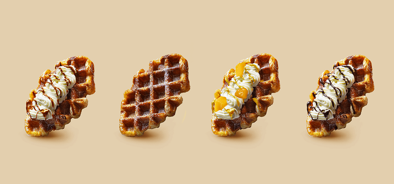 Cråffla är en unik kombination av smörig croissant och krispig belgisk våffla, och finns i fyra olika smaker. Original; pudrad med florsocker. Deluxe; med grädde och ditt val av sås; Choklad, Kola eller Mango.